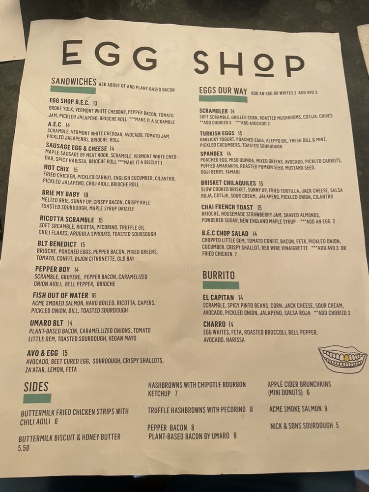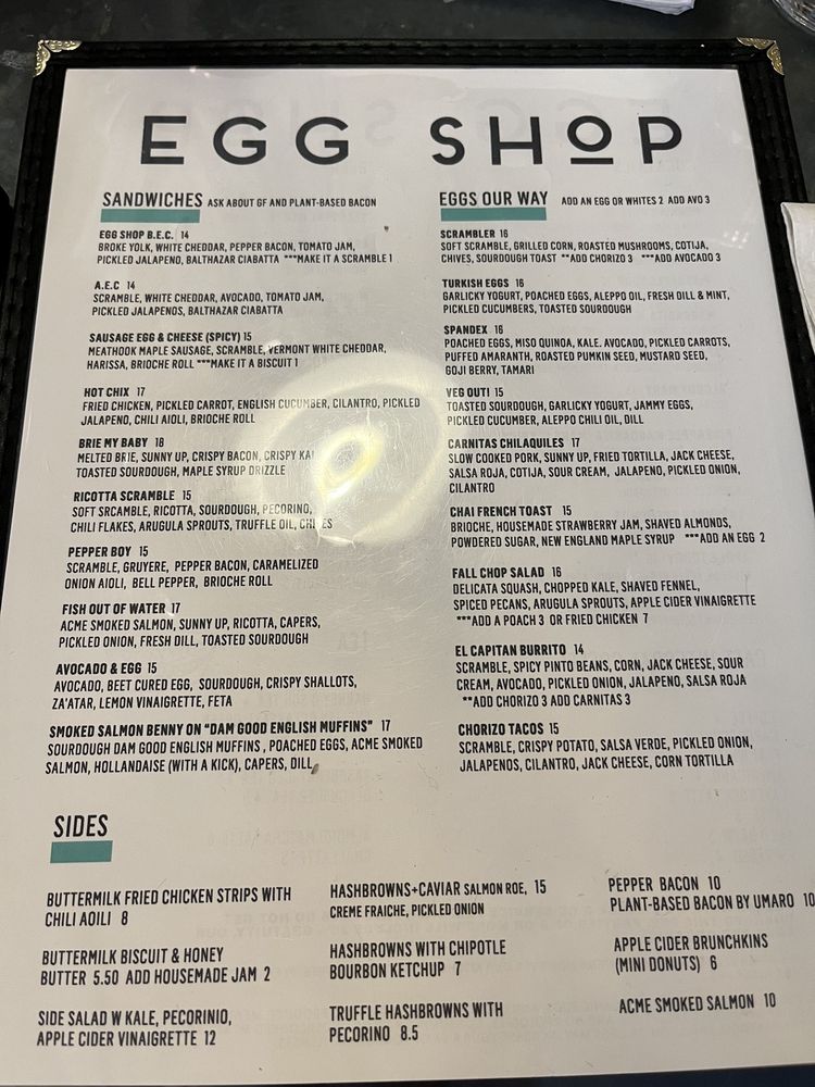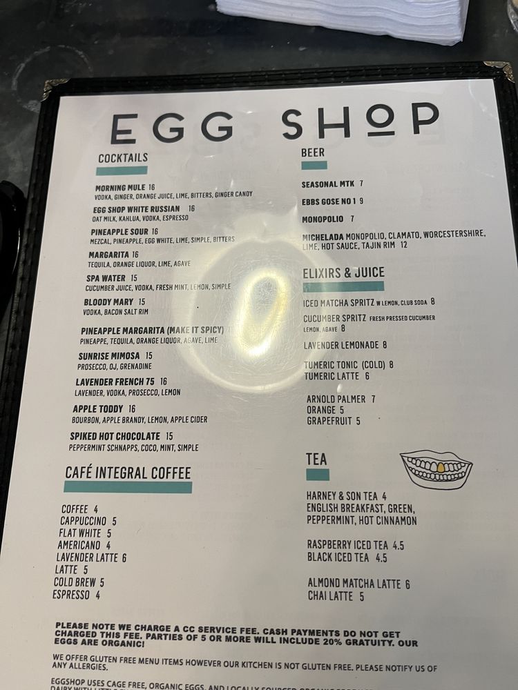The ambiance is casual yet classy, ideal for both small groups and intimate gatherings. Patrons recommend reserving in advance since the space is cozy. Notably, the attentive service enhances the experience, making each visit memorable. Enjoy outdoor seating and events like happy hour specials, or simply indulge in tasty takeout. Whether you're kicking off your day or taking a leisurely lunch, Egg Shop is sure to deliver a satisfying and enjoyable meal.